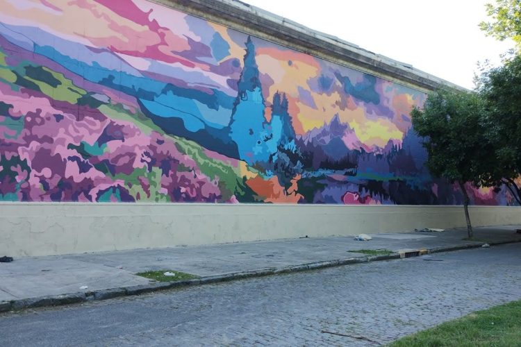 El proyecto da continuidad a las pinturas realizadas en una fase anterior sobre la Avenida Jorge Newberry, con un nuevo diseño que propone, a través de dos murales diferenciados pero continuos, “una bienvenida al cielo y una entrada al paraíso”, en palabras de sus propios autores, Lucas Tesoreriro y Eugenia Petre, artistas visuales que trabajaron la temática a partir de líneas orgánicas y composiciones que evocan tránsito y continuidad.