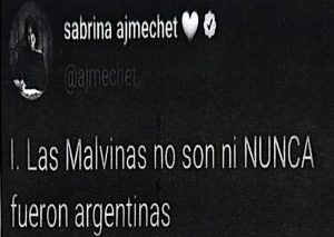 Estas publicaciones generaron una fuerte repercusión, siendo objeto de notas en medios nacionales en julio de 2021. El diario Página/12 tituló una nota: “Sabrina Ajmechet, precandidata de Juntos por el Cambio, se burló del reclamo argentino por Malvinas,” y citó que la precandidata “había afirmado que ‘la creencia en que las Malvinas son argentinas es irracional, es sentimental'”. Por su parte, el diario Perfil publicó un artículo bajo el título: “‘Las Malvinas no existen’: los polémicos tweets de Sabrina Ajmechet…”.